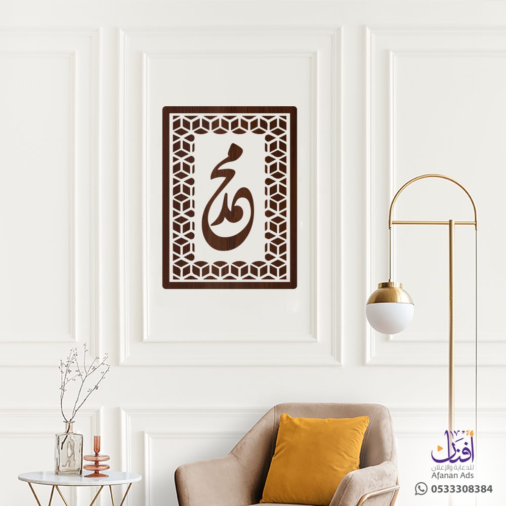 اطلب الآن لوحة جدارية باسم محمد واجعل ديكور منزلك يعبر عن إيمانك وذوقك الإسلامي الراقي بطريقة فنية وأنيقة.